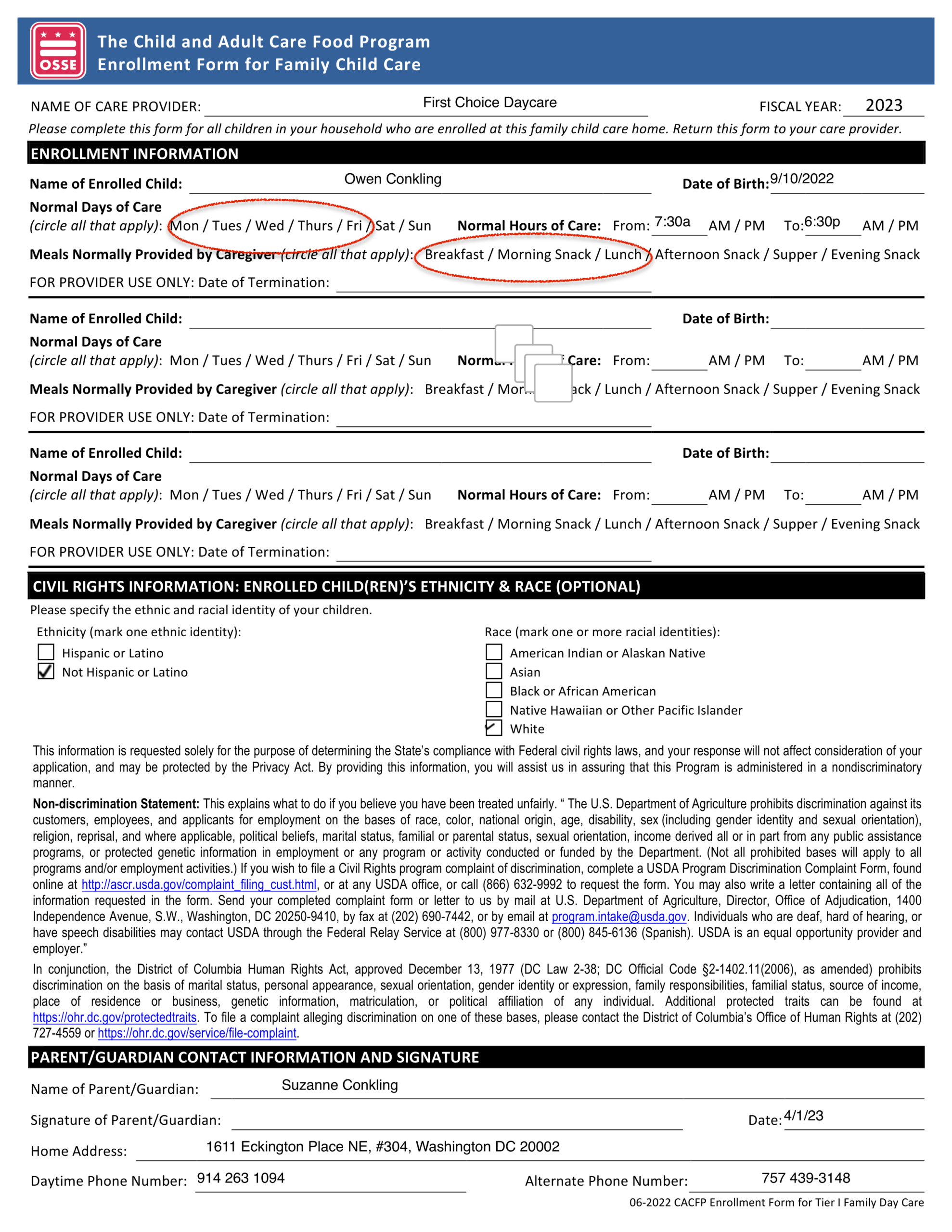 Meals: At, first choice day care we believe that a healthy diet is the foundation for thriving young minds and bodies. That’s why we are dedicated to serving nutritious meals that not only fuel our children’s energy but also delight their taste buds! We take pride in sourcing fresh ingredients from local farmers’ markets, supporting our community while ensuring that your little ones enjoy the best nature has to offer. By following the Child and Adult Care Food Program (CACFP) meal patterns, our menus are thoughtfully designed to meet the nutritional needs of growing children.